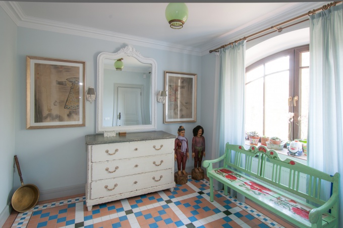 Архитектору следовало декорировать трехэтажный дом для семьи с ребенком, важно было создать уютное жилье с интеллигентной атмосферой и нетривиальными цветовыми сочетаниями. Кроме того, нужно было найти в новом доме место для антикварных хозяйских предметов мебели и света: кухонного стола, буфета, комодов, классических люстр в гостиной.