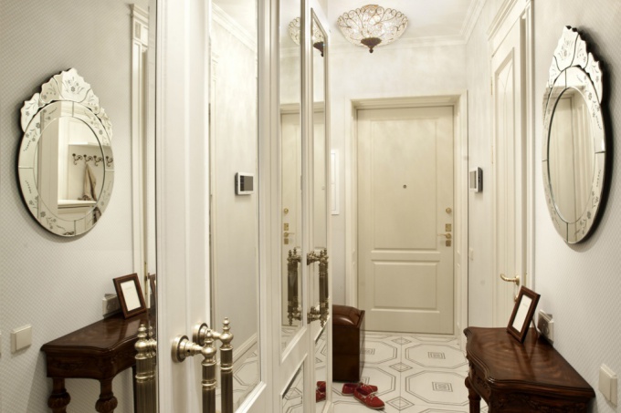 Во-первых, входная зона просто обязана быть просторной! В загородном доме мебели должно быть по минимуму. И обязательно должны присутствовать зеркала в полный рост: их наличие необходимо чисто психологически.