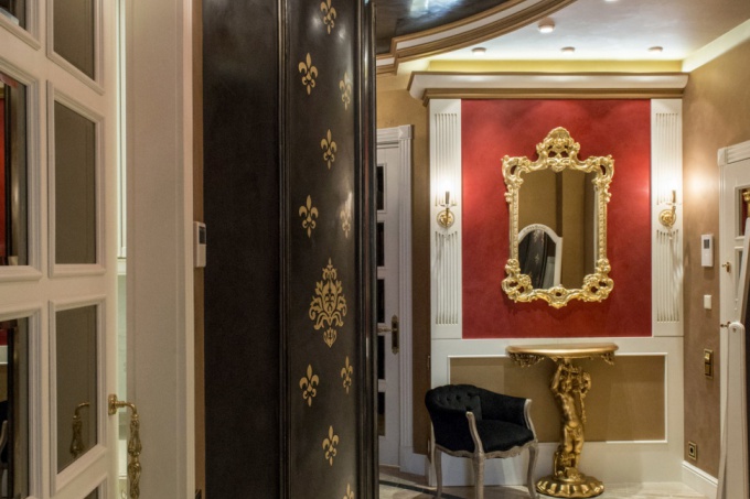 Отличительная особенность дизайн-проекта квартиры – особая аура историзма, свойственная скорее аристократичным особнякам в центре Москвы, чем современной новостройке. Изначально квартира была похожа на холодную, абсолютно не приспособленную к жизни бетонную «коробку» с неудобными комнатами-пеналами, узкими длинными коридорами, большими техническими помещениями, смежными спальнями, нелогично расположенными дверями, несущими балками по центру помещений.