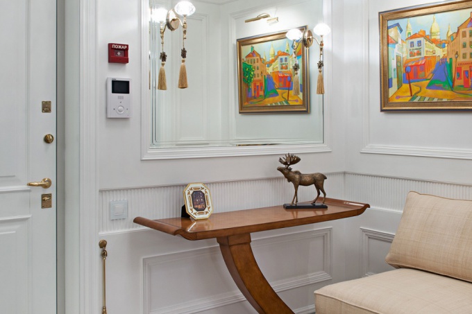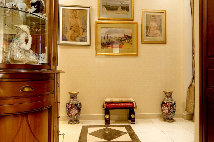 Небольшая квартира расположена в историческом особняке в тихом московском центре. Раньше на ее месте находилась четырехкомнатная коммунальная квартира. Перед архитекторами была поставлена задача создать уютное жилье для женщины, увлеченной искусством. Следовало сохранить дух быта старомосковской интеллигенции и разместить большую коллекцию живописи, графики, антиквариата и книг, включающую более полусотни картин и театральных эскизов.