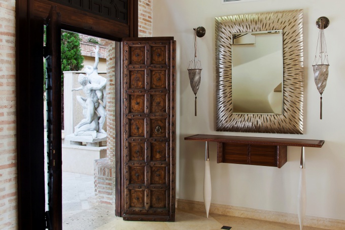 Во-первых, входная зона просто обязана быть просторной! В загородном доме мебели должно быть по минимуму. И обязательно должны присутствовать зеркала в полный рост: их наличие необходимо чисто психологически.