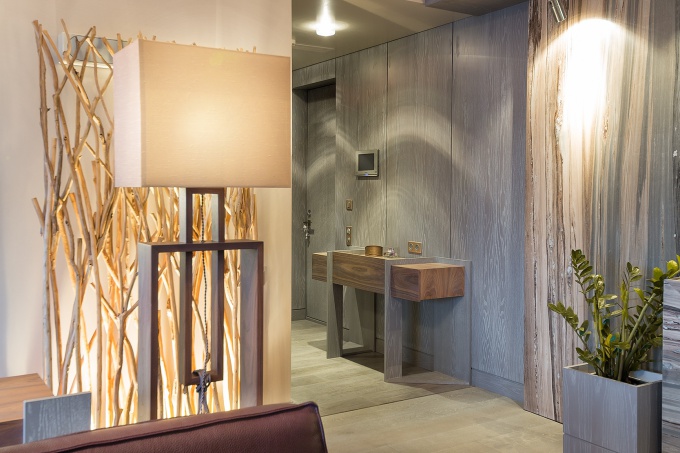 Важным критерием в формировании облика интерьера стали простота, функциональность, эргономичность и практичность. Именно поэтому архитекторы сделали ставку на закрытые системы хранения с доводчиками и амортизаторами, а также специальные финиши (в отделке деревянных изделии и стен), позволяющие продлить срок службы изделий.