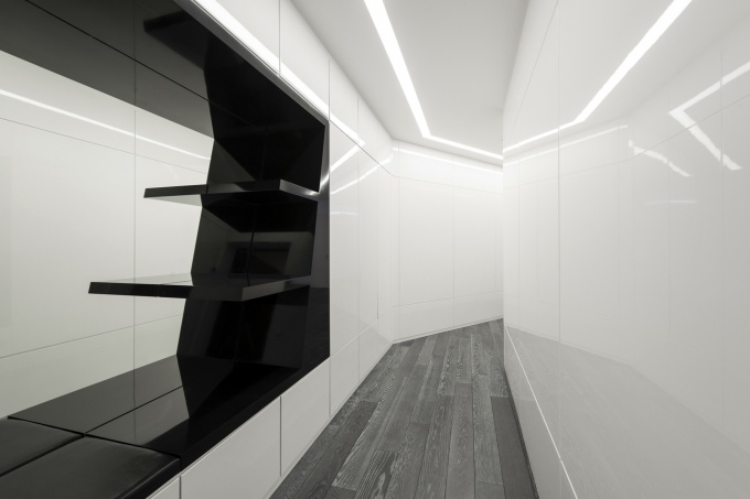 Для молодой пары, которая любит удивлять окружающих, архитекторы Майкл и Элен Мирошкины спроектировали неординарный интерьер в контрастной цветовой гамме. Несмотря на черно-белую колористику минималистичное пространство вовсе не кажется холодным и строгим, напротив, оно выглядит уютным и дружелюбным.