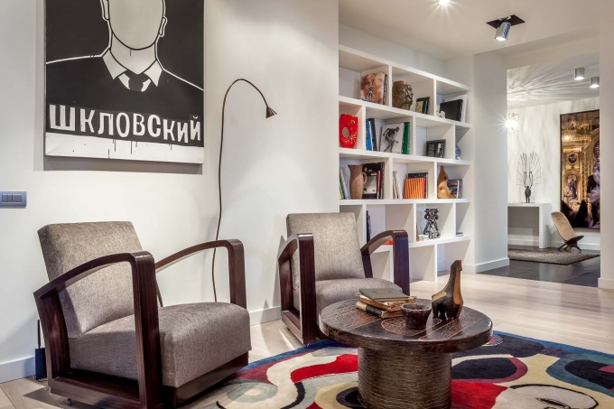 Для успешного бизнесмена, музыканта, философа и коллекционера современного искусства декоратор Марина Бусел оформила квартиру в духе нью-йоркских интерьеров начала ХХ века с антиквариатом и арт-объектами. Перед декоратором заказчик поставил две задачи: сделать музыкальную гостиную с роялем и разместить в интерьере обширную коллекцию искусства.