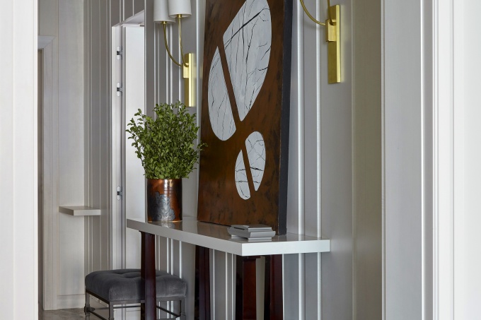 «Стилистику этой семейной квартиры во многом определила архитектура ЖК «Триумф Палас», где она находится. С одной стороны, он напоминает сталинские высотки, а с другой – американские небоскребы начала ХХ века», - рассказывает архитектор Олеся Ситникова о своем новом проекте.