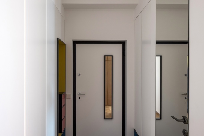 При работе над небольшой московской квартирой дизайнер Анна Гуцалова вдохновлялась архитектурой Ле Корбюзье, творчеством Мондриана и характером заказчицы – молодой и педантичной девушки из Санкт-Петербурга, которая четко знала, что хотела. Квартиру в жилом комплексе TriBeCa Apartments она приобрела для того, чтобы во время деловых поездок в Москву останавливаться не в отеле, а у себя дома.