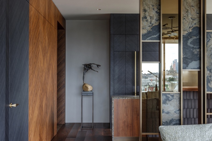 Для молодого и успешного бизнесмена архитекторы бюро «Арх.Предмет» оформили панорамную квартиру в современном жилом комплексе «Легенда Цветного» с видом на московские бульвары. Перед ними была поставлена задача создать функциональный интерьер с буржуазным характером, который они обыграли как модные апартаменты в современном американском стиле.