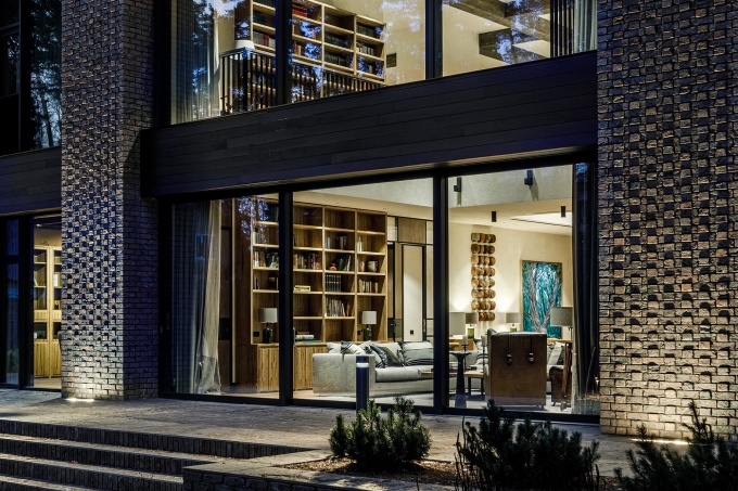 Двухэтажный дом с панорамными окнами, террасами, бассейном и огородом на кровле находится в живописной части ближнего Подмосковья, в окружении соснового леса. Работа над ним велась в тандеме с архитектором Павлом Громовым, который занимался архитектурой дома и фасадными решениями. Это тот редкий пример, когда строительство и разработка интерьерных решений шли рука об руку. «Благодаря такому комплексному подходу нам удалось использовать пространство по максимуму и создать атмосферу, которая полностью соответствует статусу дома, его характеру и окружению», - рассказывает Екатерина.