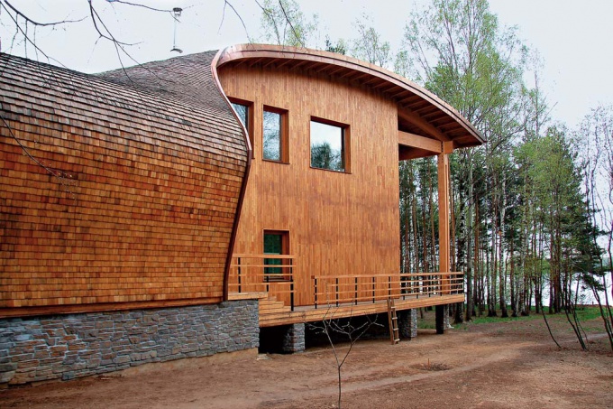 Дом-Скат – это плод архитектурной фантазии на тему единения с природой, экологическая инсталляция с яркой образностью и функциональным содержанием. Двухэтажный загородный дом композиционно объединяет разные по функции площади.