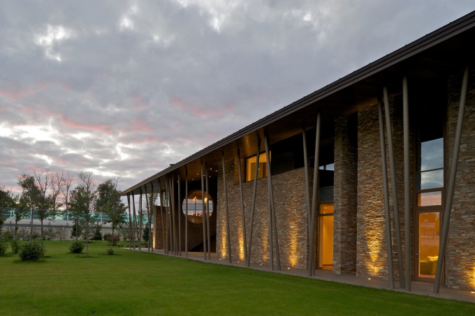 Несмотря на то, что здание имеет три этажа, визуально оно воспринимается как одноэтажная постройка. Естественность и свободу передвижения, слияние интерьера с природой и окружающим ландшафтом – все это авторы стремились заложить в проект на ранних стадиях.