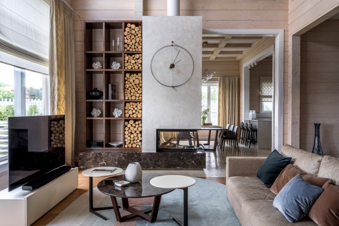 Заказчики обратились, когда деревянный дом из бруса ели уже был построен: открытая терраса, роскошный второй свет, большие окна, обилие солнечного света и близость Истринского водохранилища вдохновила на создание неординарного интерьера в темных шоколадных тонах. «Заказчики предпочитают европейские интерьеры: без лишних деталей, с ярко выраженным стилем, - рассказывает автор проекта дизайнер Полина Агафонова. – Особое внимание следовало уделить эргономике пространства, организовать много разнообразных функциональных зон (общую, приватную, детскую, рабочую), учитывая потребности каждого из членов семьи».