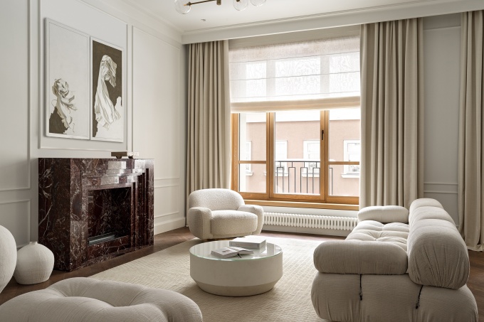 «Заказчики большую часть времени живут в Москве и за границей, но Северную столицу любят всем сердцем. При выборе квартиры в городе на Неве они искали вариант в историческом центре, вблизи музеев и театров. В итоге их выбор пал на апартаменты с террасой и впечатляющим видом на Исаакиевский собор. В интерьере мы стремились мягко и элегантно передать дух города с богатой историей», - рассказывают авторы проекта.