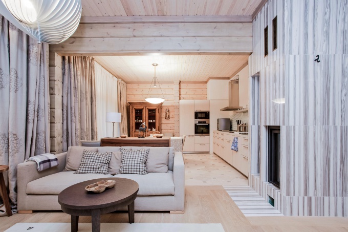 Для взыскательных заказчиков с прекрасным вкусом и любовью к плотной теплой цветовой гамме художник Марина Путиловская оформила деревянный дом, который неразрывно связан с природой. Деревянный особняк площадью 550 кв. метров находится в поселке, спроектированном с расчетом того, что его жители будут большую часть времени проводить на природе.