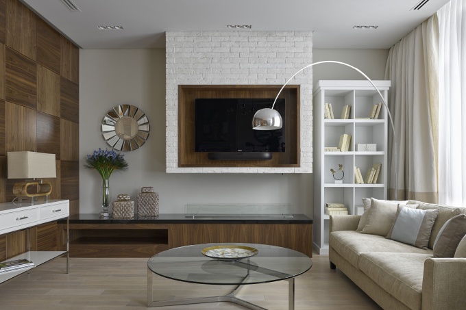 Для молодой семейной пары бюро под руководством Ольги Кушнаревой-Леоне оформило квартиру в современной стилистике, которая по духу совпала с архитектурой дома: лаконичного, функционального, лишенного какого-либо декора здания из стекла и бетона.