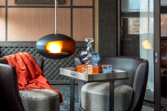 Определяющим в декоративном наполнении квартиры стала потрясающая московская перспектива, открывающаяся из панорамных окон небоскреба.