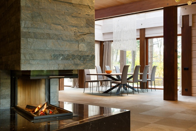 Для семейной пары с двумя детьми – приверженцев здорового образа жизни и активного отдыха – архитекторы бюро Романа Леонидова спроектировали загородный дом площадью 1500 кв. м: просторный, основательный и максимально открытый на природу. Архитектура здания в стиле конструктивизм позволила создать большие открытые пространства, а панорамные витражи – вписать здание в окружающий ландшафт, связать интерьер с экстерьером.