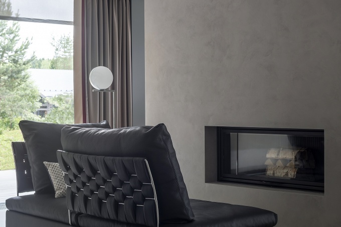 Дизайнеры подключились на стадии чистовой внутренней отделки, когда планировка была обозначена, стены подготовлены к декору, а пол всего первого этажа был облицован полированным мрамором розовато-бежевого оттенка. «Мы сразу поняли, что нужно «погасить» чрезмерный блеск камня: дом находится в окружении живописной природы, его панорамные окна ориентированы на ландшафт, поэтому хотелось создать спокойный интерьер с благородными фактурами и естественной цветовой палитрой. Благодаря доверию заказчика и слаженной работе всех участников проекта нам удалось воплотить все задуманные решения в жизнь и сделать это максимально быстро», - рассказывают дизайнеры.