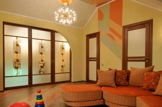 Что касается освещения, то его лучше сделать многоуровневым с разным спектром свечения ламп. Для игровой и спортивной зон дизайн игровых комнат в стиле кантри предполагает яркое активное освещение. Форма светильников может быть выполнена в виде уличного фонаря или ламп с плафонами, повторяющими растительные элементы. В зоне отдыха лучше установить такие приборы освещения, в которых предусмотрена ручная регулировка интенсивности свечения.