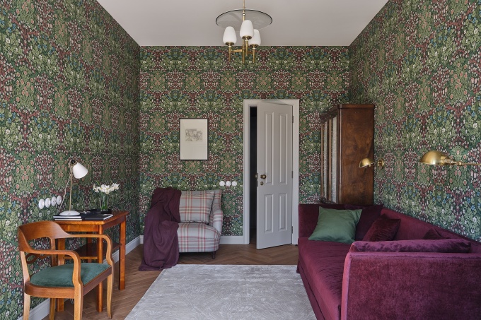 «Это не внесло никакого противоречия. Если покопаться в архивах, то схожесть английских викторианских интерьеров и российских усадеб конца ХIХ – начала ХХ веков просто удивляет… Поэтому наш антиквариат и предметы в стиле ретро вместе с изделиями российского производства, созданными на заказ, оказались чрезвычайно уместны. В конечном итоге получилось нечто российско-английское: интерьер плотный, подробный, цветной», - рассказывает автор проекта.
