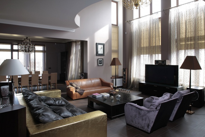 Дом выглядит светлым и просторным за счет разумной организации пространства, смелой, размашистой планировки и обилию естественного света, который льется из панорамных окон.