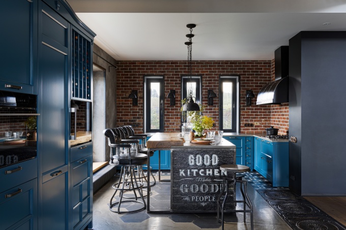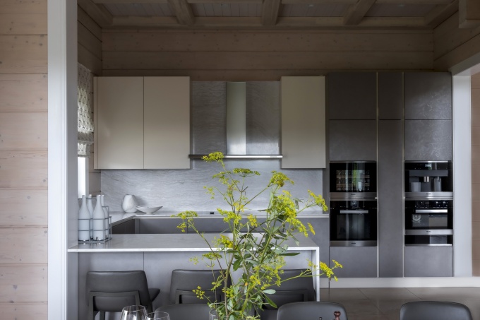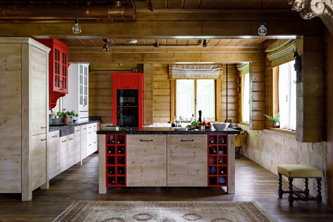 Этот необычный дом, в котором соединились элементы традиционного шале, индустриального лофта и мотивы русских сказок, дизайнер Ирина Шевченко оформила для очень близких ей людей. Семейная пара с двумя детьми любит и умеет отдыхать: принимать гостей, устраивать мероприятия, веселиться в русских традициях. Чтобы быть ближе к природе, они решили построить дом на Новой Риге у реки из бетона и дерева в духе брутальных нордических альпийских построек, но с русским характером.