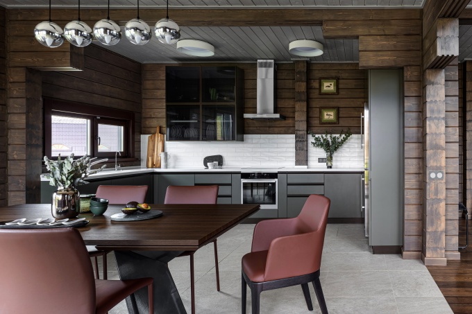 Заказчики обратились, когда деревянный дом из бруса ели уже был построен: открытая терраса, роскошный второй свет, большие окна, обилие солнечного света и близость Истринского водохранилища вдохновила на создание неординарного интерьера в темных шоколадных тонах. «Заказчики предпочитают европейские интерьеры: без лишних деталей, с ярко выраженным стилем, - рассказывает автор проекта дизайнер Полина Агафонова. – Особое внимание следовало уделить эргономике пространства, организовать много разнообразных функциональных зон (общую, приватную, детскую, рабочую), учитывая потребности каждого из членов семьи».