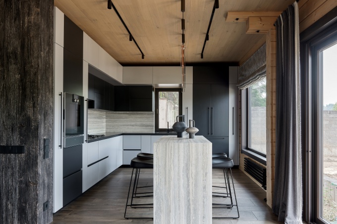 «Соединить теплые тона дерева с холодными темно-графитовыми оттенками было не простой задачей. Реализовать задуманное помогла великолепная бригада строителей и слаженная работа всех до единого подрядчиков, которые учувствовали в проекте», - отмечает автор проекта.