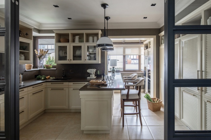 Заказчики архитектора Павла Бурмакина – семейная пара – приобрели готовый дом, который расположен в элитном коттеджном поселке и, как и все постройки на территории, имеет классическую архитектуру. «Заказчики хотели поддержать классическую тему в интерьере, но сделать внутренне пространство более сдержанным, лаконичным, - рассказывает автор проекта. – Мы сохранили традиционные приметы французской классики, но ушли от излишней помпезности, добавив элементы в стиле прованс и лофт».