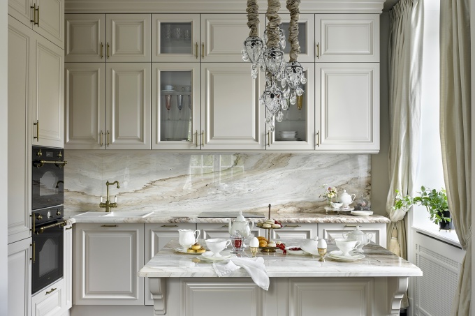 Кухня – это самое посещаемое и любимое место в квартире или современном частном доме. Ее обстановка должна не только располагать к приему пищи, но и приносить истинное удовольствие от ее приготовления. Именно это пространство зачастую ассоциируется с домашним уютом и теплом, семейными ценностями. Кухни, выполненные в классическом стиле, пользуются огромной популярностью. Так, традиционный дизайн кухни в классическом стиле предполагает использование изготовленной по индивидуальному заказу мебели высокого качества, для которой характерны изогнутые ножки, шикарная драпировка, округлые формы. Как и широко используемый дизайн кухни в неоклассическом стиле, классицизм предполагает использование мебели, выполненной из таких пород дерева, как орех, клен, вишня, тис, дуб. Она также может быть искусно инкрустирована позолотой, бронзой или перламутром, украшена великолепно выполненной резьбой.