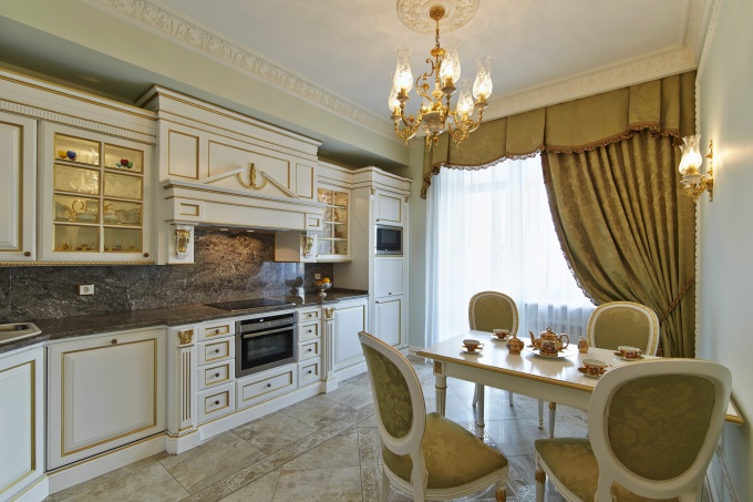 Для молодой женщины, увлеченной коллекционированием предметов искусства и антиквариата, дизайнер Леонид Зайцев (руководитель дизайн-бюро R-Studio) спроектировал квартиру в стиле помпезной классики. Образ респектабельного интерьера строится на использовании натуральных дорогих материалов, авторских декоративных изделий (лепнина, росписи, столярные изделия) и роскошной мебели, выполненной современными европейскими производителями по старинным технологиям.