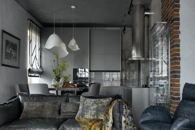 Поэтому перед дизайнером он поставил задачу создать нетривиальный интерьер, вне привычных рамок и правил. «Он попросил его удивить, - рассказывает автор проекта Екатерина Колегова. – Поэтому мы сделали ставку на контрастные фактуры и рукотворные предметы, которые существуют в единственном экземпляре и только здесь. В основе дизайна лежит кинематографический принцип старых итальянских мастеров, когда один кадр неспешно сменяет другой, позволяя полностью погрузиться в наполненную символичными деталями атмосферу».
