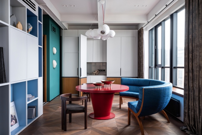 Дизайнеры Ольга Седова и Прохор Машуков (бюро ONLY Design) около десяти лет назад прибрели квартиру в одном из сталинских домов 1950-х годов постройки на Новопесчаной улице, сделали ремонт, который на тот момент отражал их восприятие действительности. Получился стильный, очень подробный, наполненный деталями и предметами искусства, но достаточно монохромный, интерьер. За прошедшее время предпочтения дизайнеров изменились, да и пандемия с локдауном вдохновила на яркие краски, захотелось движения, радости, иронии.