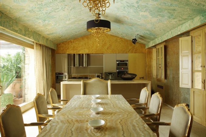 На верхней был размещен открытый бассейн и веранда с летней кухней, на средней – гостевые апартаменты с мини-бассейном, а на самой нижней – ландшафтный парк и виноградник. Трехэтажный главный дом спроектирован так, что выглядит продолжением скальной породы: с одной стороны, он защищен от ветров, дующих в зимнее время, а с другой – максимально открыт на живописный пейзаж. Постройка возведена из гранита – аутентичного для данных мест материала, выход к бассейну накрыт перголой с вьющимися растениями.