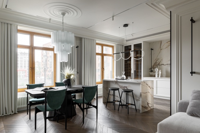 Заказчик живет на два города: работает в Москве, а отдыхает с семьей в Санкт-Петербурге. Он поставил задачу создать классическую, но нестандартную квартиру: живую, воздушную с современным прочтением традиционных решений. Важными критериями были легкость, воздушность пространства и наличие ярких акцентных элементов. Дизайнер соединила классические принципы и современную эстетику, предложив свое прочтение петербургской классики. Получился живой и воздушный интерьер, с яркими деталями и скрытыми смыслами.