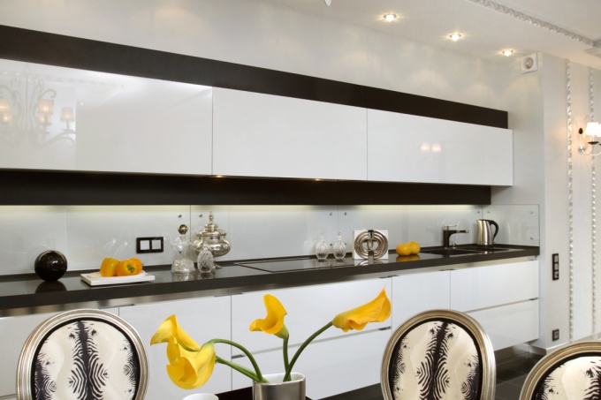 Однако в процессе работы в дизайн-проекте появилось серебро, фиолетовый цвет и глянец. Интерьер преобразился в чёрно-белый, минималистичный по цвету, но близкий по духу ар-деко объект.