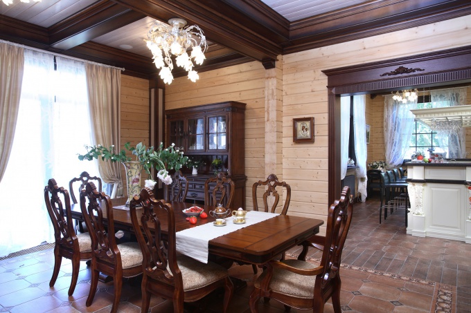 Заказчики обратились к дизайнерам с предложением создать буржуазный интерьер в стиле старой Англии. Главное условие состояло в том, что сам дом должен был быть непременно деревянным, из оцилиндрованного бревна. Дерево – живой материал, он создает уют и полезен для здоровья.