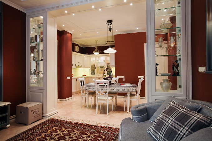 Небольшая квартира находится на тихой московской улице. Перед архитектором стояла задача четко ориентировать помещения квартиры по сторонам света (кухня должна была находиться на юге, спальня – на востоке, кабинет – на запале, гостиная – на севере). Цветовая гамма также была заранее определена заказчиком.