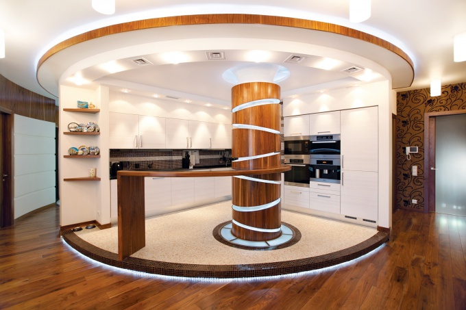Ситуация осложнялась тем, что кухня находилась далеко от гостиной, а заказчики видели ее в едином объеме с гостиной.
