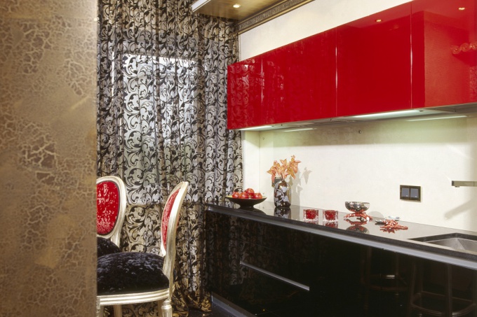 Интерьер квартиры заказчики первоначально видели в стиле минимализм, однако в процессе они решили ввести приметы ар-деко и Востока. Поэтому к заранее определенной черно-красной цветовой гамме архитекторы предложили добавить золотые акценты. Они помогли расставить верные акценты и создать торжественную атмосферу.