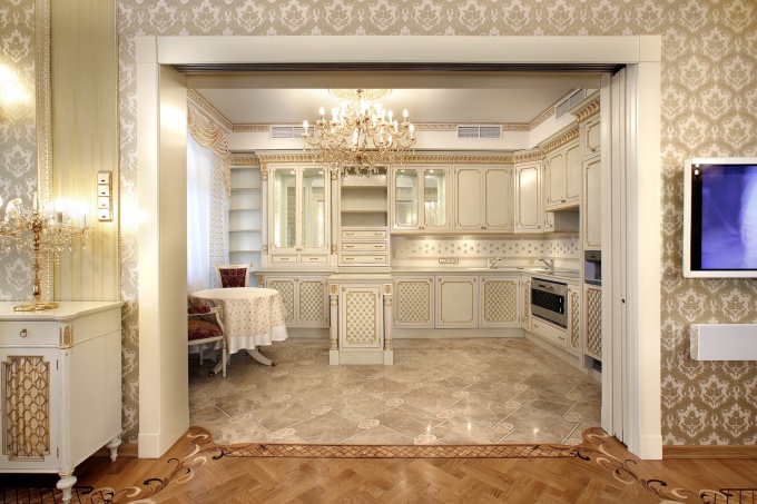 Авторам проекта следовало создать парадный интерьер в классическом стиле. Заказчики видели свое новое жилье респектабельным и комфортным. Чтобы соединить внешнюю нарядность и домашний уют, дизайнеры предложили торжественную классику и беспроигрышную бежево-золотую палитру.