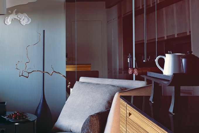 Интерьер создан для человека, увлеченного культурой Востока. В качестве основной линии выбрана японская стилистика, адаптированная под жизнь европейца. Идея интерьера – японский ландшафт, изображающий вечер на берегу пруда.