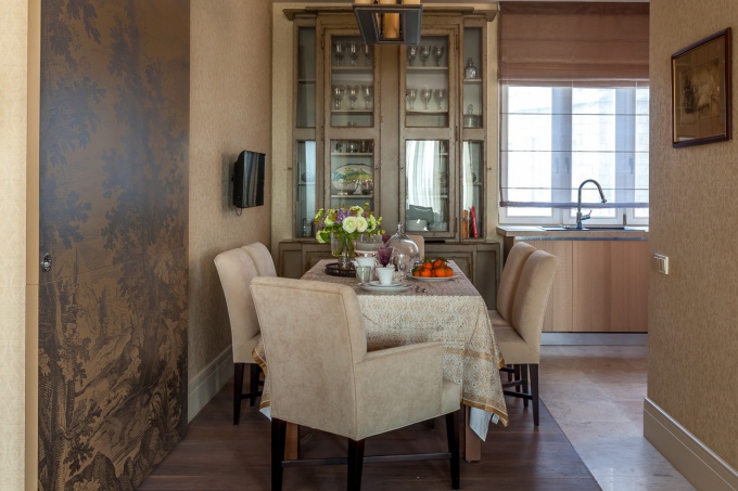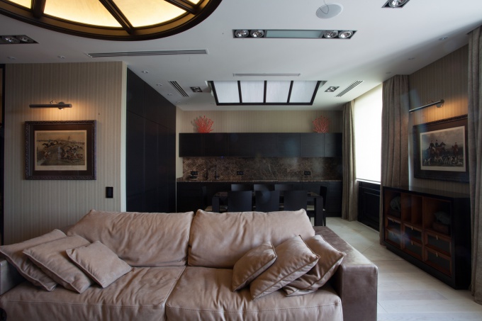 Декораторы Юрий Зубенко и Ольга Щербакова спроектировали ее для семейной пары с двумя маленькими детьми. Основные акценты они сделали на благородные пастельно-бежевые цвета и фактуру натурального дерева и камня. В интерьере присутствуют уникальные авторские изделия (потолочные витражи, столярные изделия) и предметы от итальянских брендов, прославленных деликатным подходом к классическому наследию.