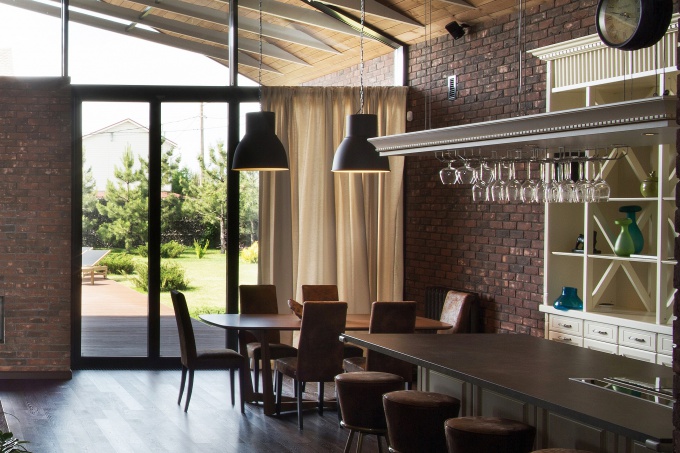 Деревянный дом площадью 310 кв. метров расположен в коттеджном поселке в Подмосковье. Застройщик планировал сдавать дом с отделкой, и, когда дизайнеры подключились к проекту, была частично выполнена электрика и заложены некоторые архитектурные решения. Часть из них авторы проекта предложили скорректировать, создав максимально удобный план дома. Чтобы сделать конструктивные изменения незаметными, заново воздвигнутые стены были отделаны имитацией бруса.