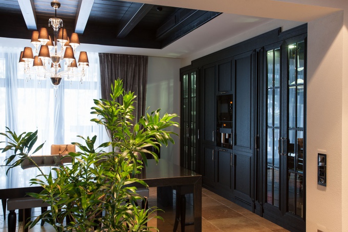 Основными декоративными акцентами стала авторская мебель и двери из ценных пород дерева и латуни.