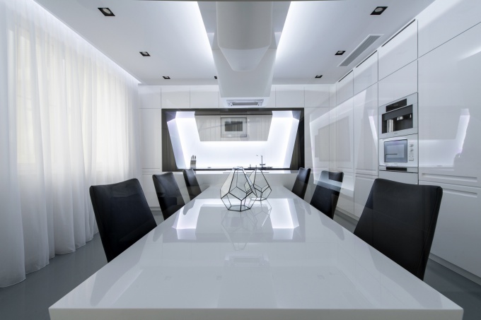 Архитекторы студии Geometrix Design спроектировали квартиру, чей футуристичный облик был вдохновлен новаторской архитектурой жилого комплекса «Аксиома». Лаконичный монохромный интерьер с бионическими формами и элементами деконструктивизма выглядит самодостаточным и комфортным для жизни.