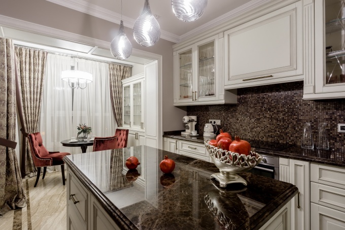 Заказчики мечтали о квартире с классическим антуражем, наполненной солнцем и яркими красками. Для архитекторов Татьяны Смирновой и Натальи Нестеренко это был первый опыт проектирования интерьера в классическом стиле. Использование насыщенной цветовой палитры постепенно вывело их на итальянскую тему, которая оказалась необычайно близка заказчикам и гармонично вписалась в пространство панорамной трехкомнатной квартиры в московской высотке.