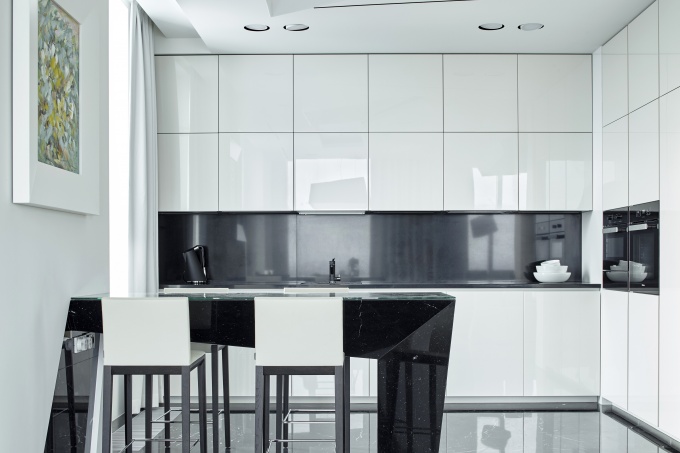 Работая над проектом квартиры в центре Москвы для молодой семейной пары, архитекторы бюро AI-architects взяли за основу образ современной роскошной яхты. Значительная часть деталей интерьера была спроектирована и изготовлена на заказ по эскизам авторов проекта. Например, сложные деревянные модули из дерева ореха произведены на заводе Loher в Германии, три поколения основателей этой компании занимаются интерьерами яхт премиум-класса.