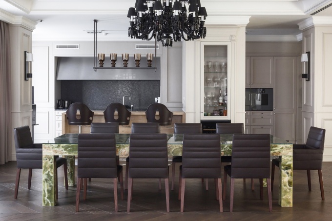Поскольку квартира находится в историческом районе Москвы, близи Кремля и бульваров, то изначально они хотели получить классический интерьер. Однако после совместной с дизайнерами поездки на миланскую мебельную выставку, решили добавить в интерьер современную дизайнерскую мебель. В итоге получился микс из классики и современности, но, если обыкновенно дизайнеры используют современный фон и классические предметы, то авторы этого проекта пошли другим путем и на классическом фоне разыграли современный сценарий.