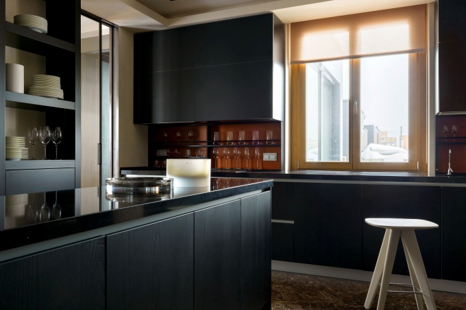 Квартира расположена на последнем этаже жилого комплекса и имеет огромное преимущество – эксплуатируемую кровлю, парящую над городом. «Заказчик поставил единственное условие – сделать открытую террасу с зоной отдыха и барбекю, а также зимний сад с атмосферой релакса, где можно отдохнуть не хуже, чем в загородном доме», - добавляют архитекторы. В итоге получился статусный интерьер с видом на знаковую московскую архитектуру, роскошный и функциональный.