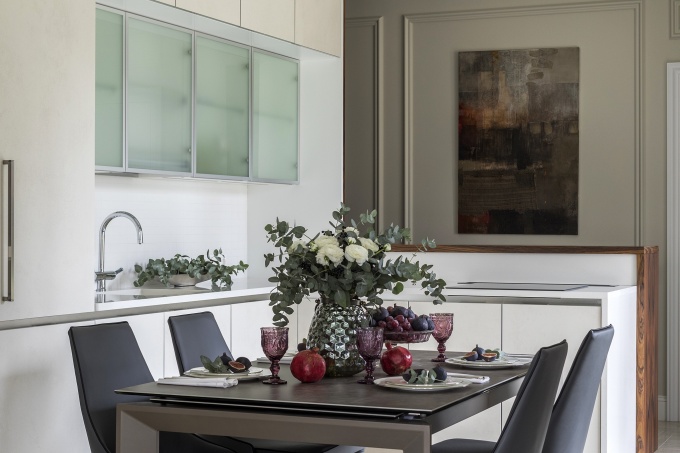 «Строился он не для рядового советского человека, поэтому квартира имела ряд преимуществ: достаточно разумная планировка, окна на две стороны, балконы, хорошая высота потолков, панорамные виды на пруды… Все это послужило отправной точкой к созданию абсолютно современного интерьера: спокойного, без излишнего пафоса и радикальных решений, который не устаревал бы достаточно долго», - рассказывает автор проекта Михаил Новинский.